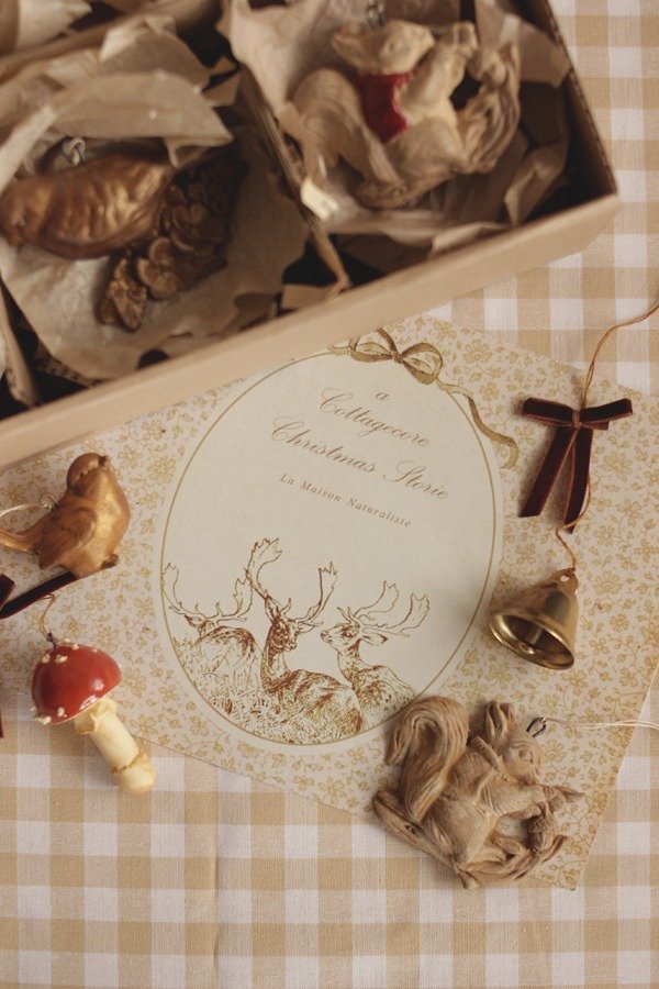 Los adornos vienen en una caja de cartón con divisiones, un print, un moño con lazo y un cascabel ♡