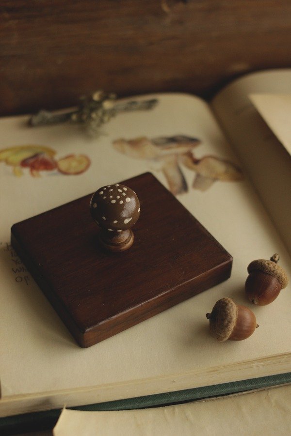 Sello para papel, tela, madera, cerámica o porcelana. Estampa de goma en relieve. Soporte en madera antigua recuperada de cedro. El soporte viene con manijita de honguito en color: rojo, beige o bordó. Si te gusta más clásico, está la opción "Madera Natural".