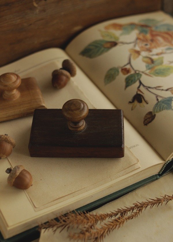 Sello para papel, tela, madera, cerámica o porcelana. Estampa de goma en relieve. Soporte en madera antigua recuperada de cedro. El soporte viene con manijita de honguito en color: rojo, beige o bordó. Si te gusta más clásico, está la opción "Madera Natural".