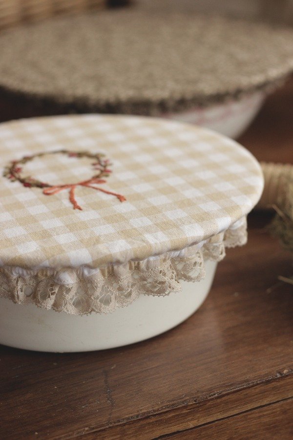 Fundas para fuentes o bowls ajustables y lavables. Bordadas a mano con muchísimo detalle inspiradas en el estilo Cottagecore.
