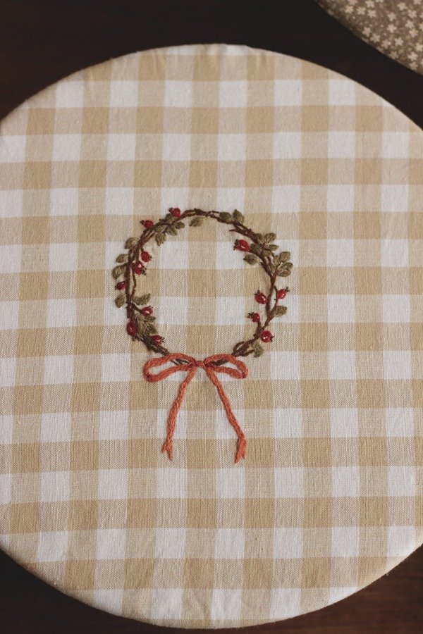 ~ Funda bordada con motivo de corona navideña con escaramujos 100% Algodón Oeko Tex Certificado (para fuentes o bowls de hasta 22 cm de diámetro)