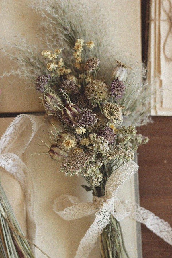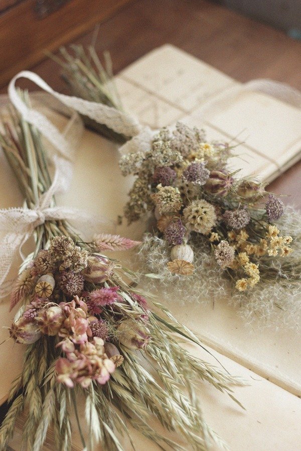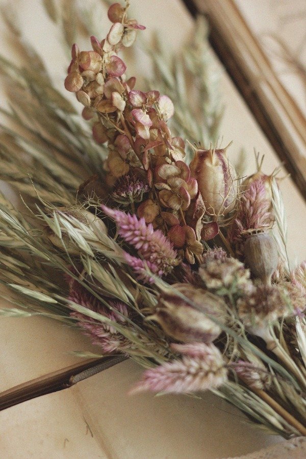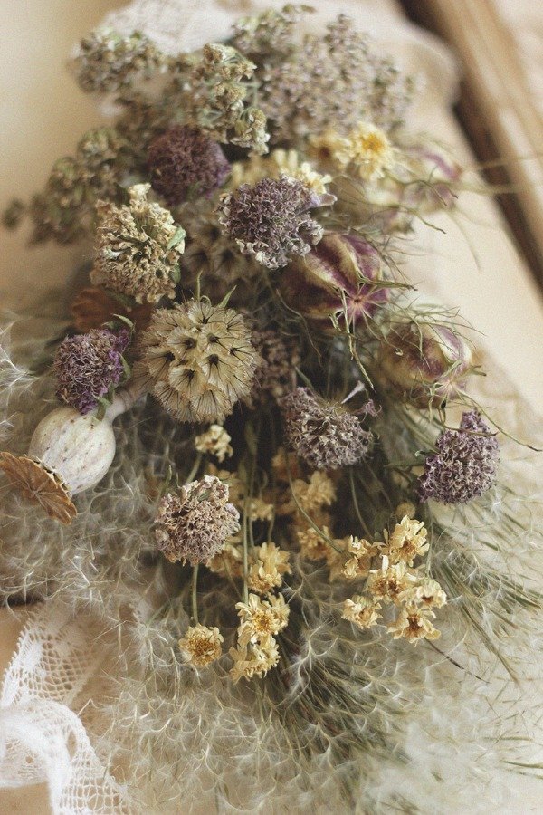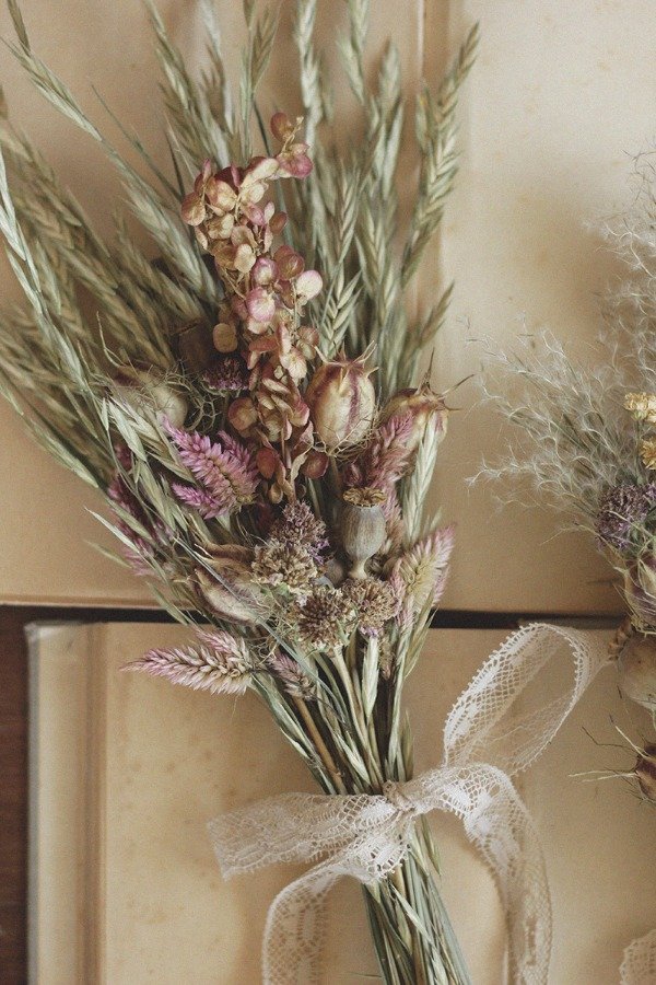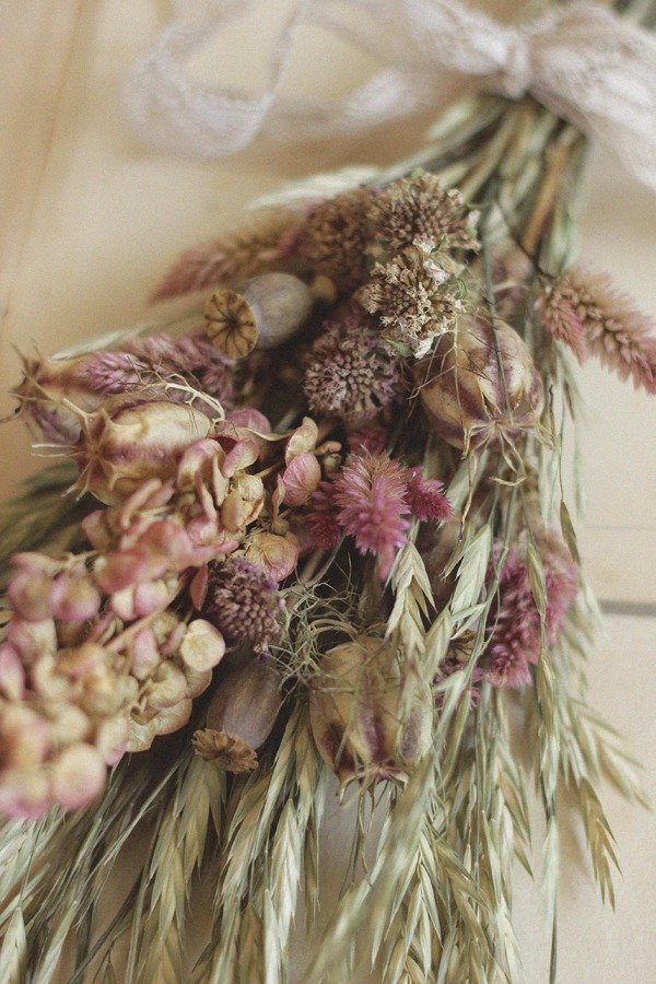 Ramo perenne ideal para regalar, decorar un lindo jarrón o colgar boca abajo y dar un aspecto "campestre" a un rincón de nuestro hogar. Estos ramos están inspirados en otros tiempos, con la delicadeza de colores sutiles y apagados y detalles de puntillas antiguas. Cada pasto, flor y fruto que lo componen, fueron cultivados desde semilla en nuestro jardín, en armonía con el entorno, sin pesticidas ni fertilizantes artificiales. Son orgánicos y naturales, secados cuidadosamente en nuestro taller, sin tratamientos químicos ni colorantes. Además viene con un precioso lazo de puntilla antigua ♡