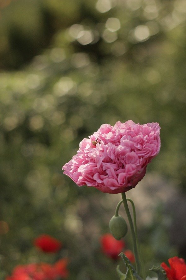 Qué decirles de esta belleza absoluta que hace algunos años cultivamos en el jardín, la Amapola Real “Belle Époque” nos quita el aliento cada mañana de primavera, cuando despertamos y damos nuestro rutinario paseo por los canteros. Empieza a abrir con los primeros rayos de sol, el pimpollo es muy grande por sus pomposas flores de mil pétalos. Sus tonos van del rosado muy suave al púrpura intenso pasando por intermedios como salmón, lavanda o rosa viejo. A diferencia de otras amapolas, sus flores no son tan efímeras, se va despetalando de a poco, a medida que pasan los días. La planta tiene gran altura, puede llegar a 150 cms o incluso superarlos. Su follaje es muy decorativo, con hojas enormes en color celeste grisáceo. Sus frutos son ideales para ramos de flores frescas o secas, ya que forman una cápsula redonda muy ornamental. Favorita de las abejas melíferas. Florece durante noviembre, en donde vivimos es la última amapola en florecer.