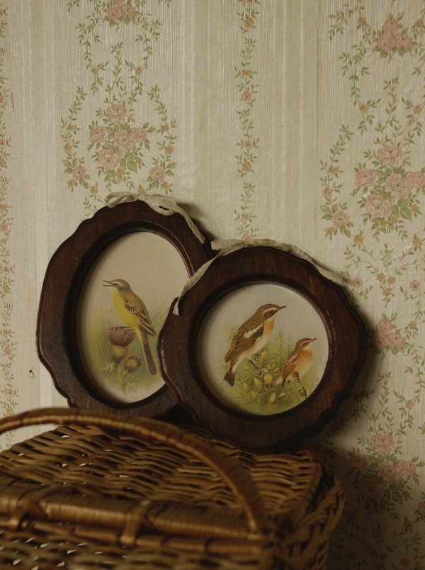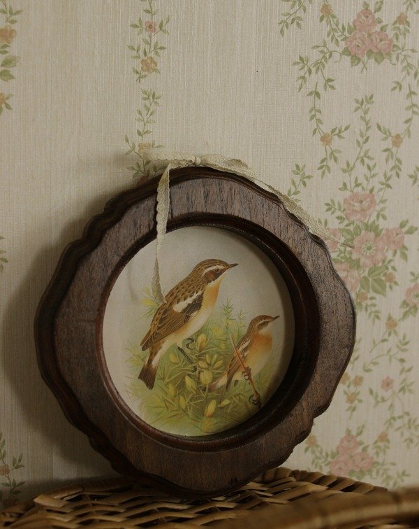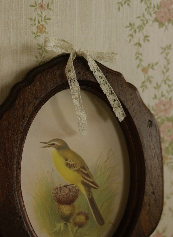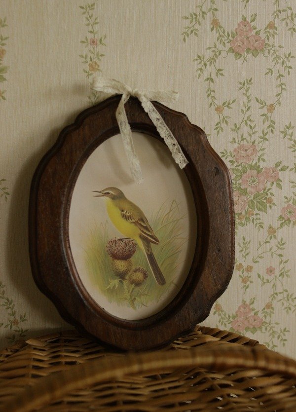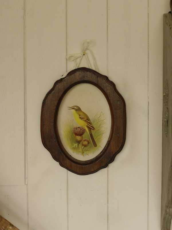 Marcos con ilustraciones antiguas de historia natural con motivos de Aves. Realizados en madera muy antigua recuperada de Cedro. Combinados con puntillas antiguas. Las ilustraciones están laminadas para su fácil limpiza y que perduren en el tiempo.