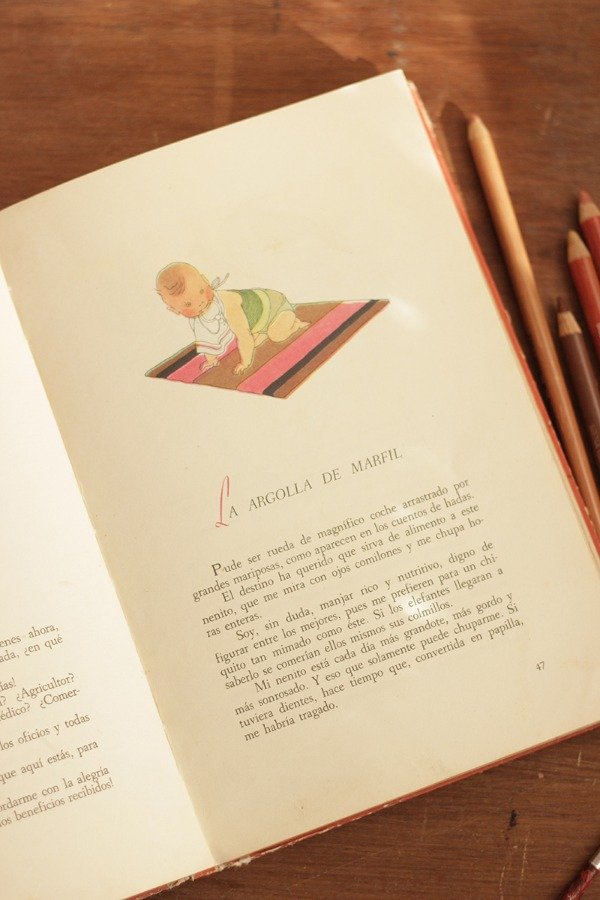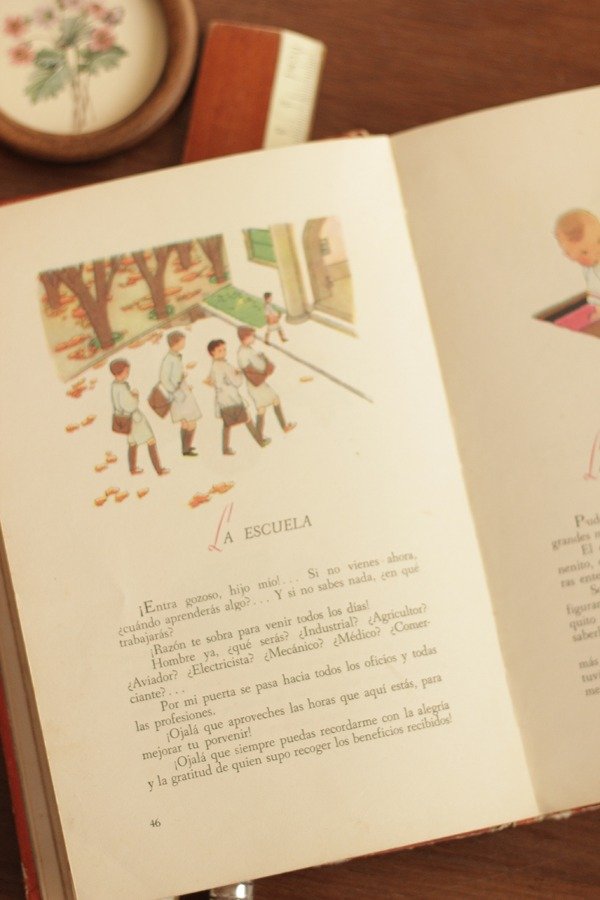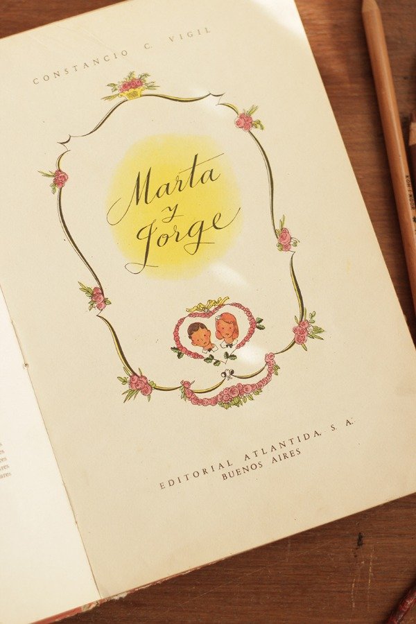 Libro Escolar Antiguo "Marta y Jorge" de Constancio Vigil. Es un libro de lectura y tiene distintas historias ilustradas.