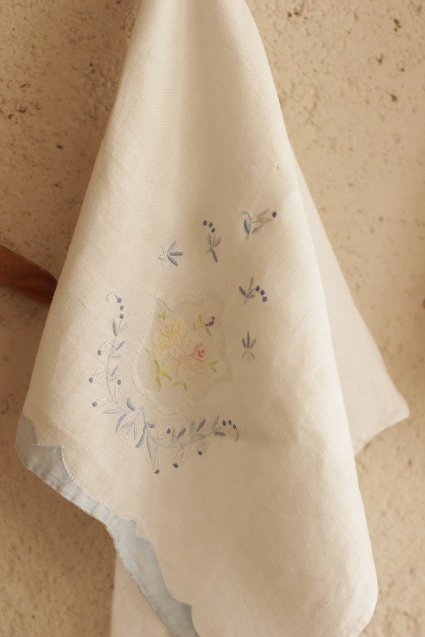 Antiguas carpetitas con técnica "Appliqué" que es bordado sobre apliques, una belleza delicada y muy prolija, se nota la paciencia de quien la hizo. En algodón y linón. Son dos piezas, una en linón blanco con apliques celestes y otra en algodón marrón con apliques en blanco y ruloté con onditas. Todas hechas a mano.