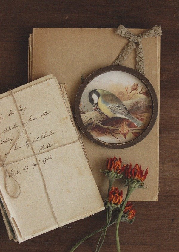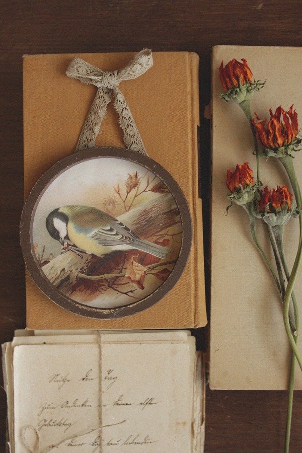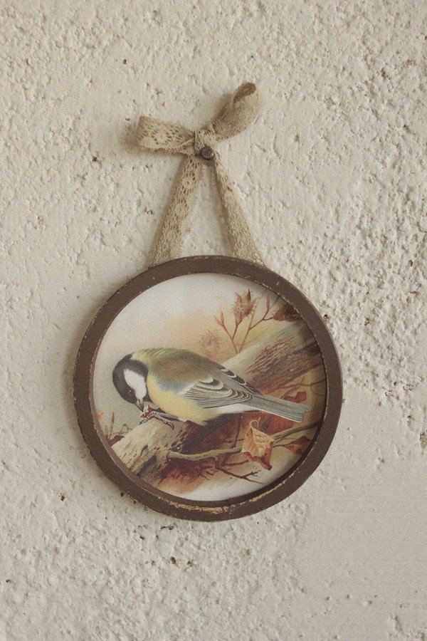 Cuadrito decorativo de MDF con reproducción de lámina antigua de historia natural. La imagen está laminada en mate, para que no se estropee con el tiempo o con la humedad, se puede limpiar fácilmente con un paño húmedo. Con puntilla antigua como lazo para colgar