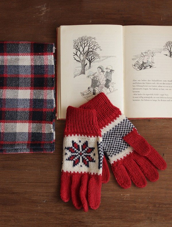 Par de guantes tejidos a mano con estilo "Fair Isle" preciosos, muy suaves, y en perfecto estado