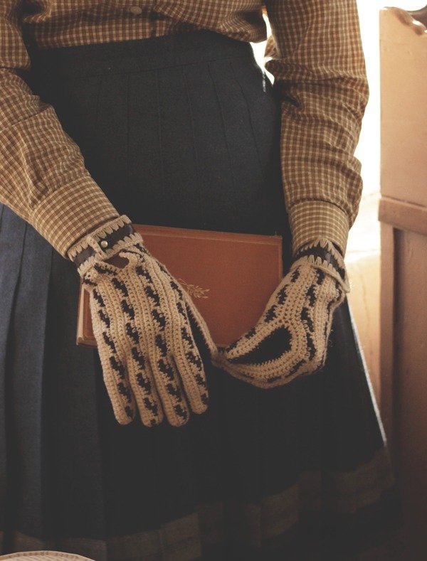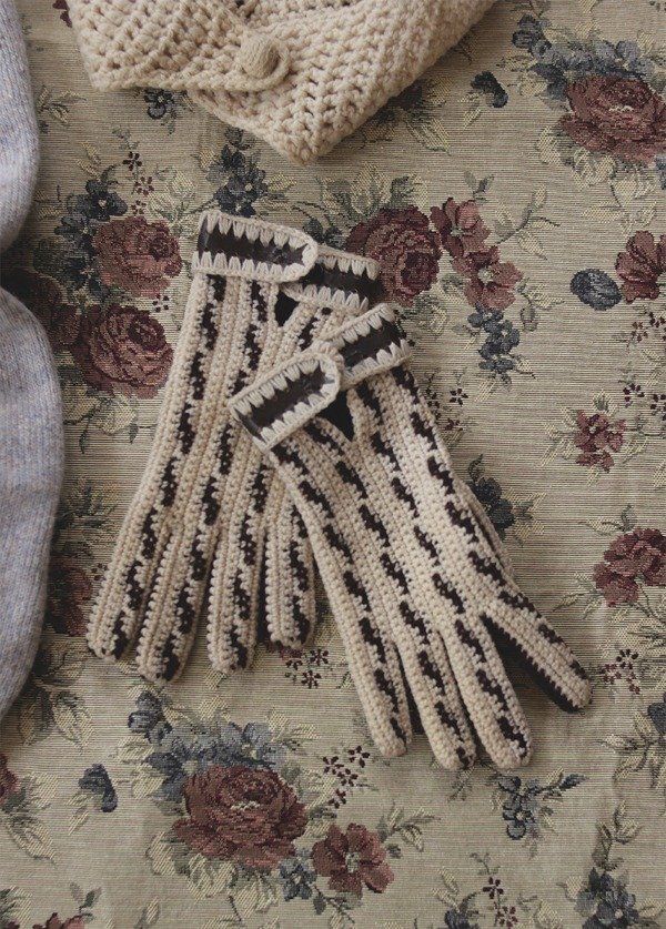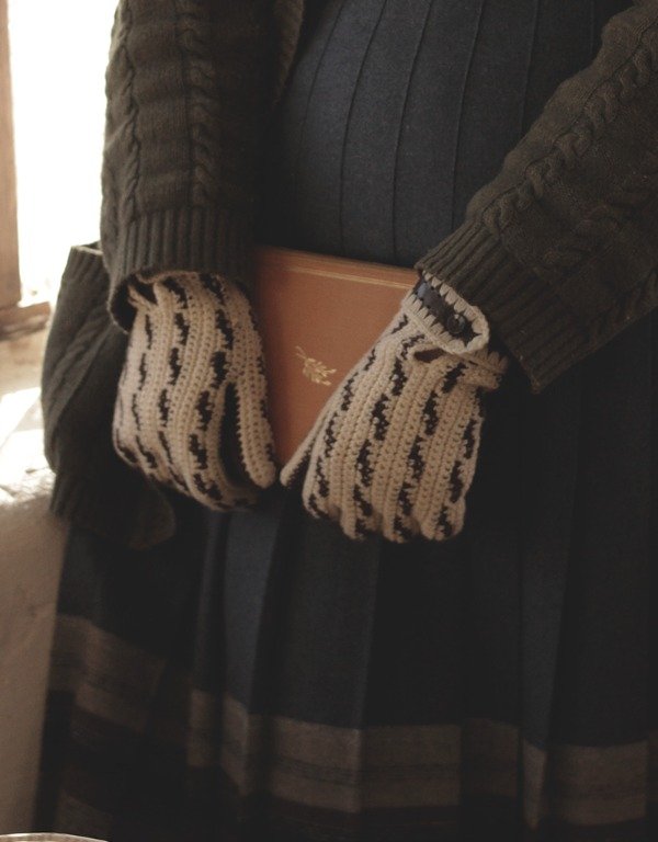 Par de guantes tejidos a mano con jacquar combinado en color crudo y chocolate. Tienen una perlita para sujetar en la muñeca. Calzan perfectos y son muy abrigados. No pican.